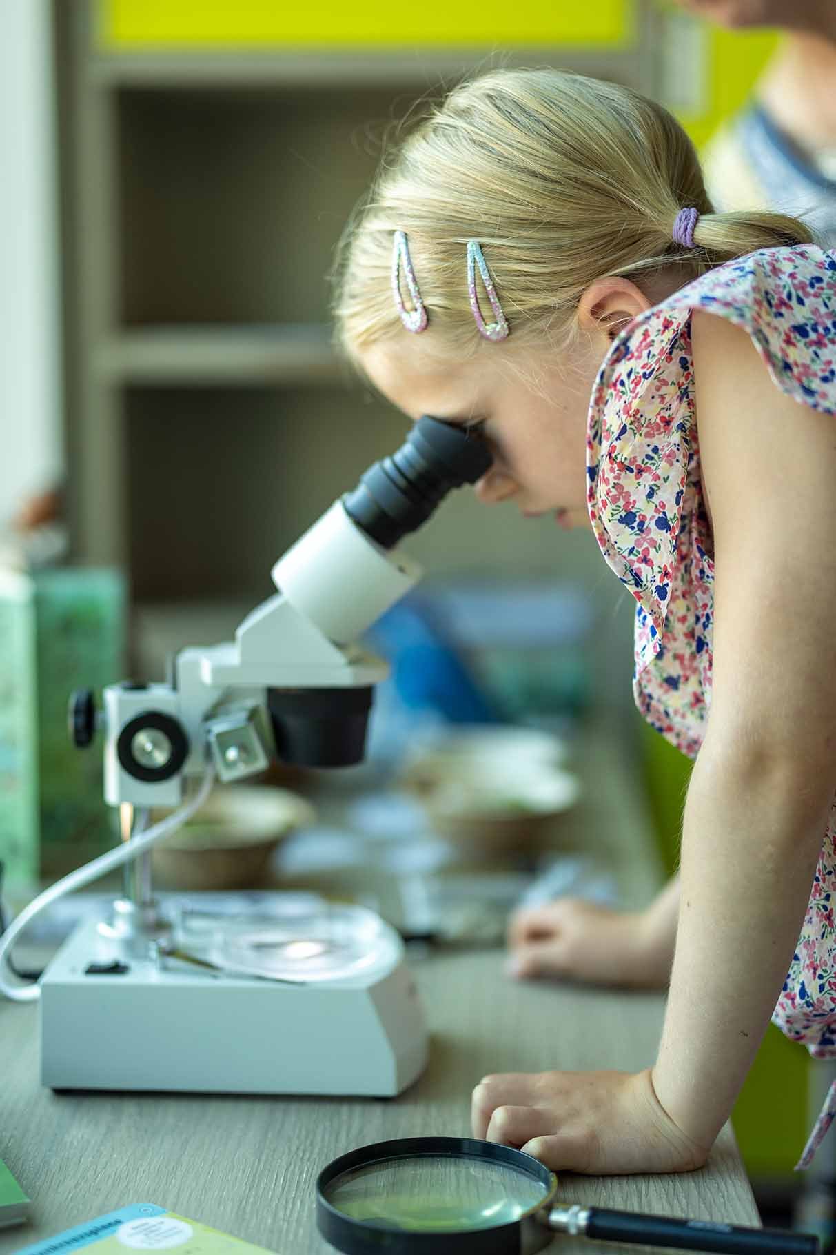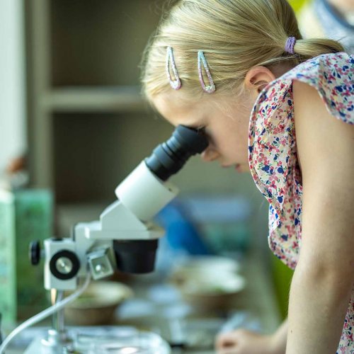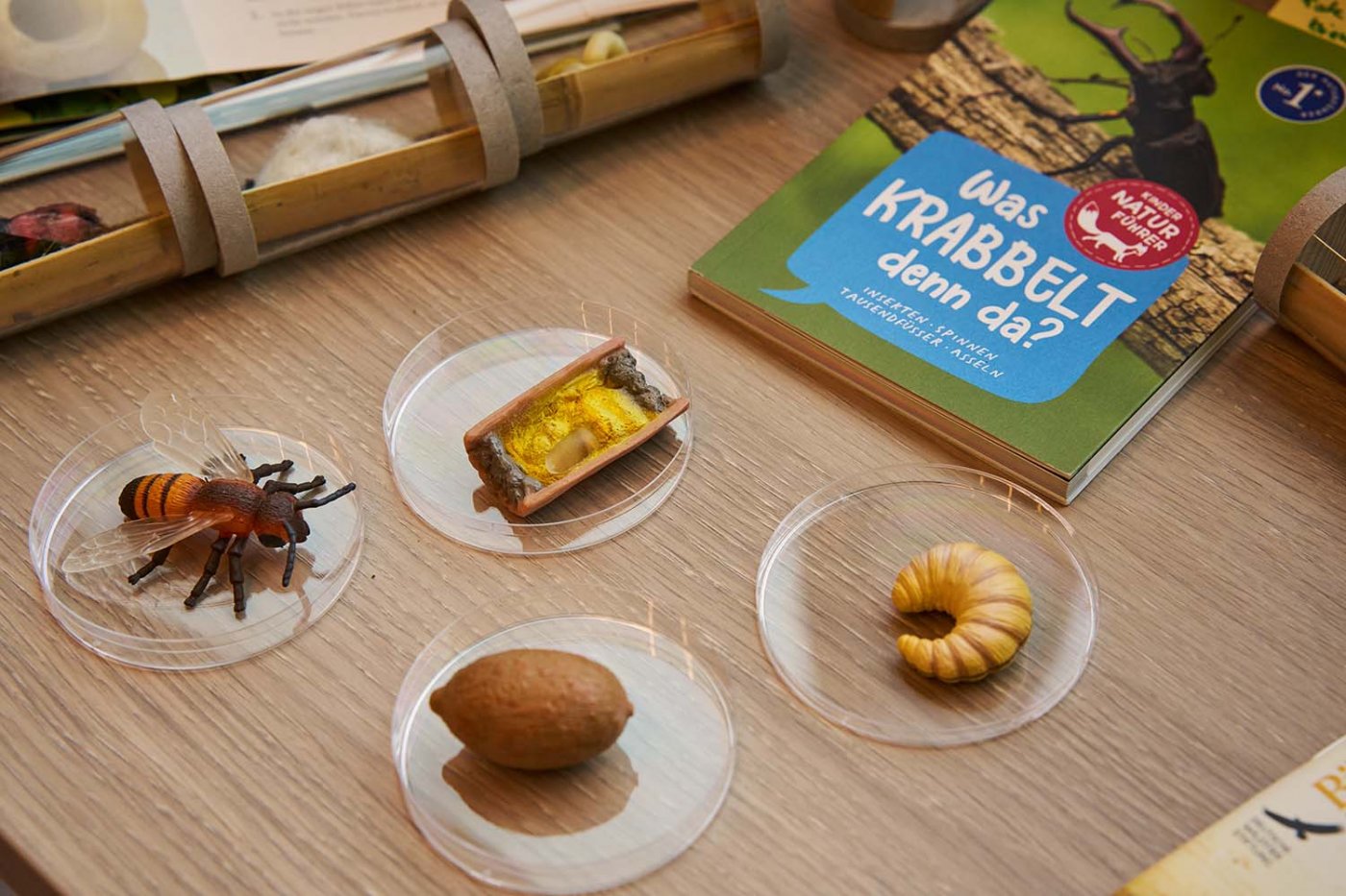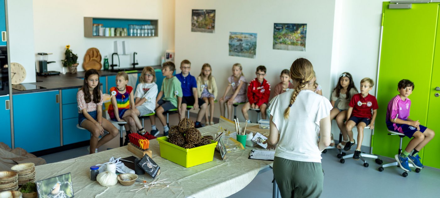 Angeschlossen an die multimediale Ausstellung bietet die Lernwerkstatt viel Platz für spannende Modelle, Präparate und Naturmaterialien, die die Kinder ausgiebig erforschen, ertasten und im wahrsten Sinne des Wortes unter die Lupe nehmen können. Unsere erfahrenen Naturpädagoginnen begleiten sie auf dieser Entdeckungsreise.